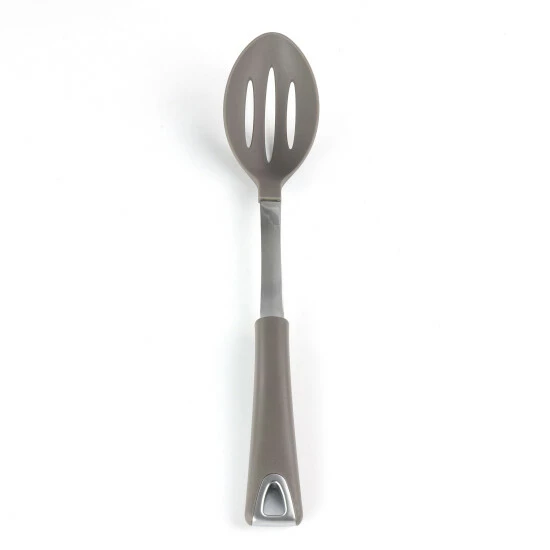 Enjoy cooking all your favorite meals with the Martha Stewart Nylon Slotted Spoon in Grey. The slotted feature allows to pick up and draining solid foods from boiling water. The ergonomic heat resistant handle provides comfort and control while cooking. Can handle heat up to 400 degrees Fahrenheit. This Martha Stewart slotted spoon is just one of the amazing pieces you can get for your home kitchen. Complete the entire collection to truly feel right at home.