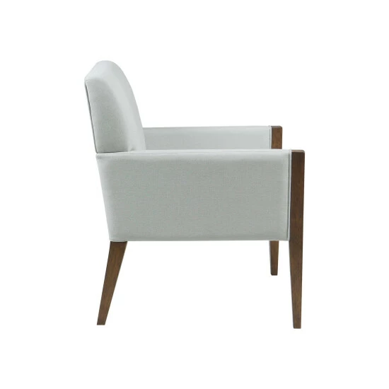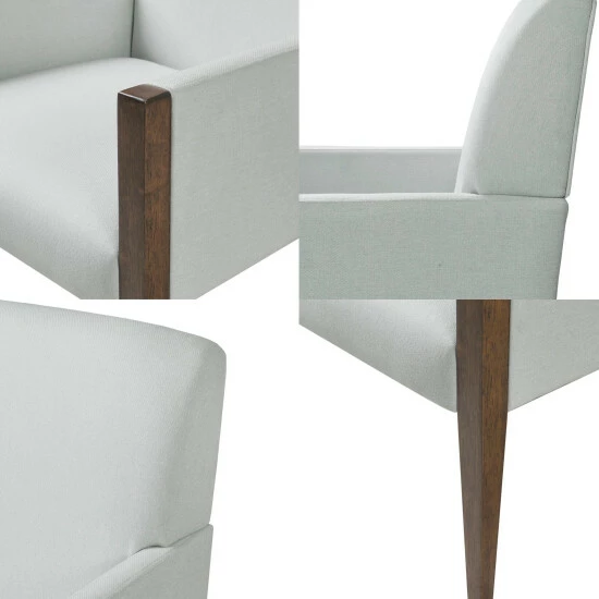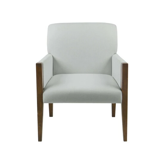 Taking inspiration from her home in New York City, the Martha Stewart Remo Accent Chair reflects the modern beauty instilled in the Perry Street collection. This accent chair features track arms to create a sink-in seat with a padded back and seat cushion for exceptional comfort. The exposed, solid wood legs add an elegant contrast to the upholstery and create clean lines that highlight the contemporary design. Perfect for your living room or home office, this upholstered accent chair elevates your home dรฉcor with that iconic Martha Stewart charm. Assembly is required.
