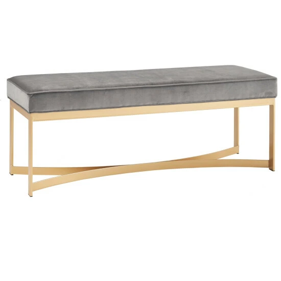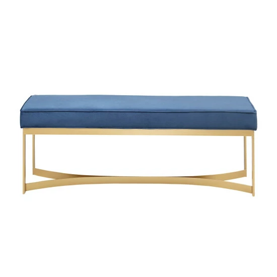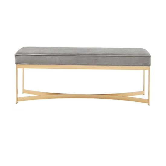 Update your home decor with the sleek style of the martha stewart secor bench. This accent bench features a solid upholstered seat with a gold metal base that creates a chic modern look. Place this bench in your entryway, bedroom, or living room to give your home decor a contemporary touch. No assembly required.