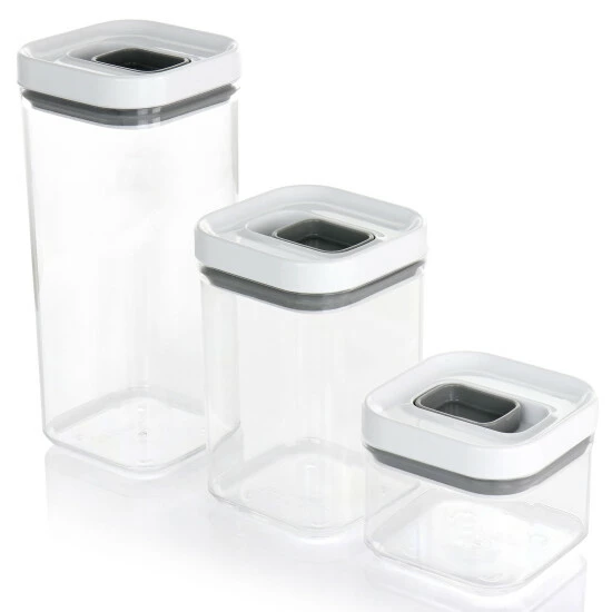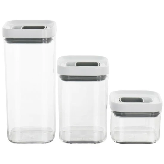 Keep your pantry beautiful and organized with the Martha Stewart Siobhan 3 Piece Acrylic Storage Container Set. Organize and store ingredients to keep food fresh and ready. Whether in the pantry or on the countertop, these classic canisters transform clutter into a convenient display of your favorite kitchen essentials. This set includes three containers in varied sizes for multiple uses. Features lock-slide lids with silicone suction to keep your ingredients fresh and ready for use.