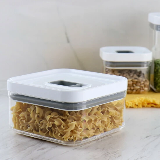 Keep your pantry beautiful and organized with the Siohban acrylic storage collection by Martha Stewart. This 35.5oz clear storage container is made with a stackable modular design for a neat and organized pantry. Sliding lock offers an airtight seal to keep food fresh, safe, and ready for use. This container is perfect for storing nuts, dried fruits, beans, and more. The Siohban storage collection is made with a space saving stack-able design to help you achieve your best pantry potential. Durable acrylic and plastic locking lid keep all your ingredients visible and fresh!