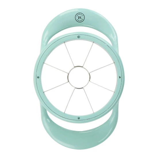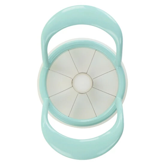 Cores and slices apples in one easy motion. Oversized handles provide a comfortable grip. Cover protects blades during storage. Treat all your guests with the most delicious apples and cut them so precisely with the Martha Stewart apple corer. Make this the perfect addition to your kitchen collection.Material: Stainless SteelColor: TurquoiseCare: Handwash onlyComfortable grip