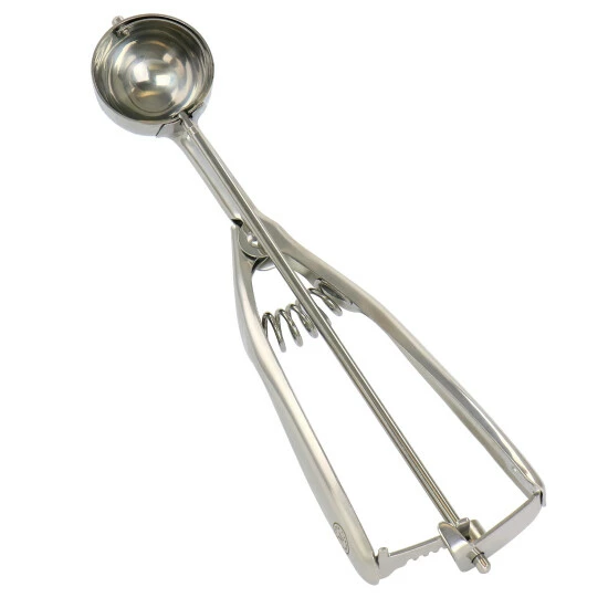 Set up consistent scoops with the Martha Stewart Stainless Steel Kitchen Scoop. This kitchen tool features a squeeze trigger for fast and easy release of scoops. Made of 18/8 stainless steel for long lasting durability. Dishwasher safe for easy and convenient cleaning. Scoop out balls of cookie dough, watermelon, or dumpling filling. No home kitchen is complete without this tool!