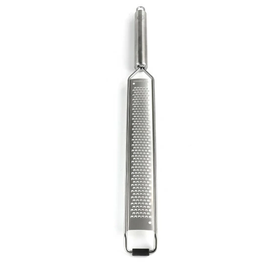Grate all your favorite cheeses, veggies, and many foods with the Martha Stewart Stainless Steel Long Grater. Featuring razor-sharp stainless steel teeth reduce clogging. Hollow handle provides a balanced grip for easy handling and control. Narrow size fits in bowls to contain shredded food. The durable stainless steel is built to last. This Martha Stewart utensil is just one of the amazing pieces you can get for your home kitchen. Complete the entire collection to truly feel right at home.