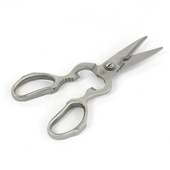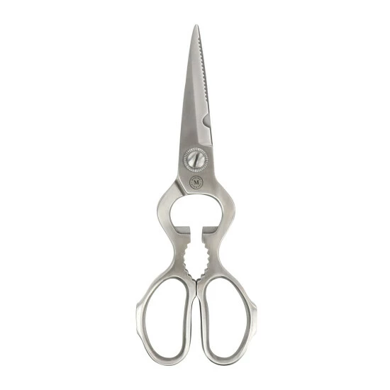 The Martha Stewart Scissors made of stainless steel cuts smoothly, great for snipping herbs, opening packaging or trimming meat. The ergonomic handle is suitable for left- or right-handed use. It includes a built-in bottle opener and nutcracker. A beautiful stainless steel finish is sure to compliment any kitchen. This Martha Stewart utencil is just one of the amazing pieces you can get for your home kitchen. Complete the entire collection to truly feel right at home