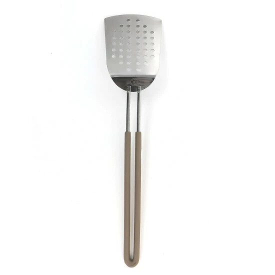 The Martha Stewart Stainless Steel Slotted Spatula in Gray was designed to drain liquids while lifting and keeps food from sticking. The durable polished Stainless Steel construction is built to last. The extra long loop handle with heat resistant silicone wrap keeps hands away from heat. This Martha Stewart utensil is just one of amazing home kitchen pieces you can get for your home kitchen. Complete the entire collection to truly feel right at home.