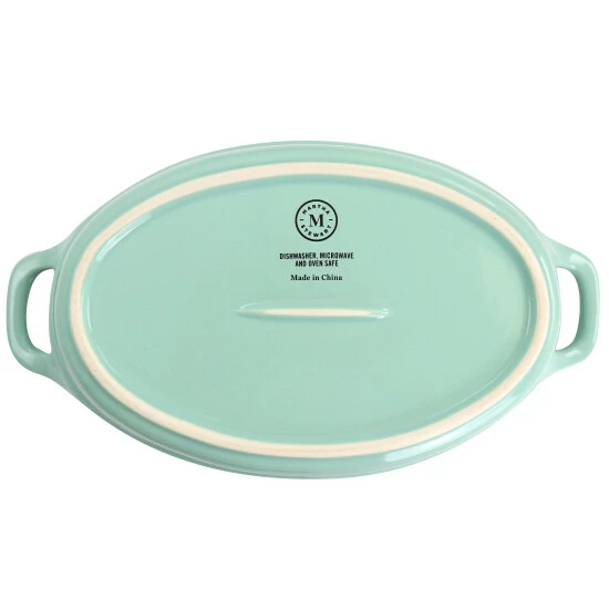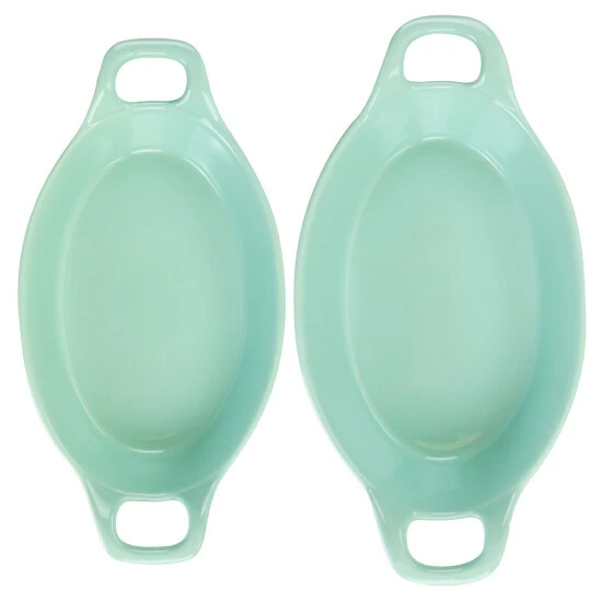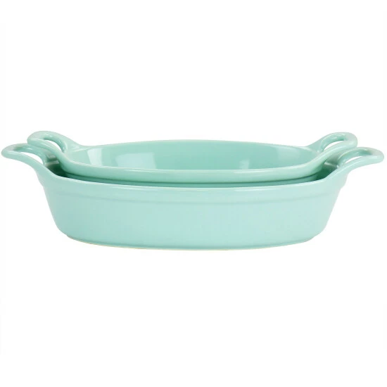 The Martha Stewart 2 Piece Oval Baker Set is perfect for 2-4 serving casseroles and desserts. These oven, microwave, and dishwasher safe bakers feature two carry handles for easy portability. Glossy finish and sleek modern look lets you bring these bakers straight from the oven to the table to serve. These bakers go are simple and durable and will go with most kitchen and tableware decor. Set includes one 9.5in oval baker and one 12.75in oval baker.