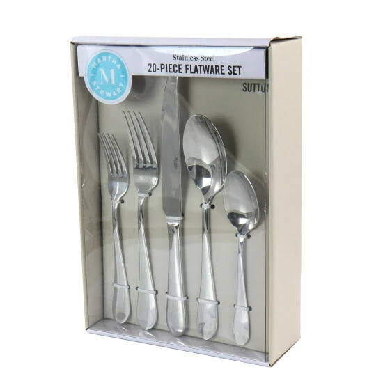 The perfect addition to any table setting. Your guests will love the elegant design and feel right at home with the Martha Stewart Garden Cottage Stainless Steel 20 Piece Flatware Set. Includes 4 of each, salad fork, dinner fork, dinner knife, dinner spoon and teaspoon. Made of strong, durable stainless steel that is built to last. This Martha Stewart flatware set is just one of the amazing pieces you can get for your home kitchen. Complete the entire collection to truly feel right at home.
