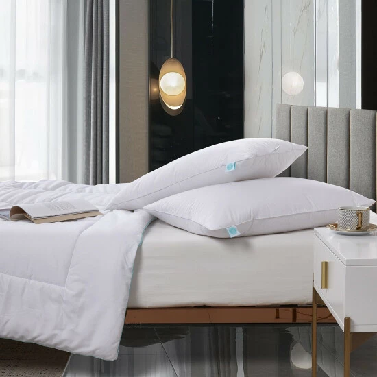 Offering 233 thread count 55-percent Tencel, 45-percent cotton cover and 95-percent feather, 5-percent down fill wrapped around in 60-percent Tencel, 40-percent polyester for the comfort by Martha Stewart. ย This pair of luxurious pillows offers both comfort and longevity. Perfect for back sleepers, these medium-firm pillows deliver the necessary softness for a good night’s sleep.