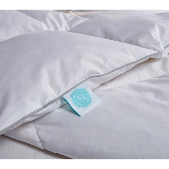 Sleep in ultimate comfort with this Martha Stewart Comforter. The white cotton cover is filled with white feather and down fill, and finished with sewn-through box stitching. Choose from three sizes to perfectly fit your mattress.
