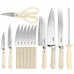 Hot Sale 🎁 Martha Stewart Essential Ruxton 14 Piece Stainless Steel Knife And Block Set In Cream 🤩